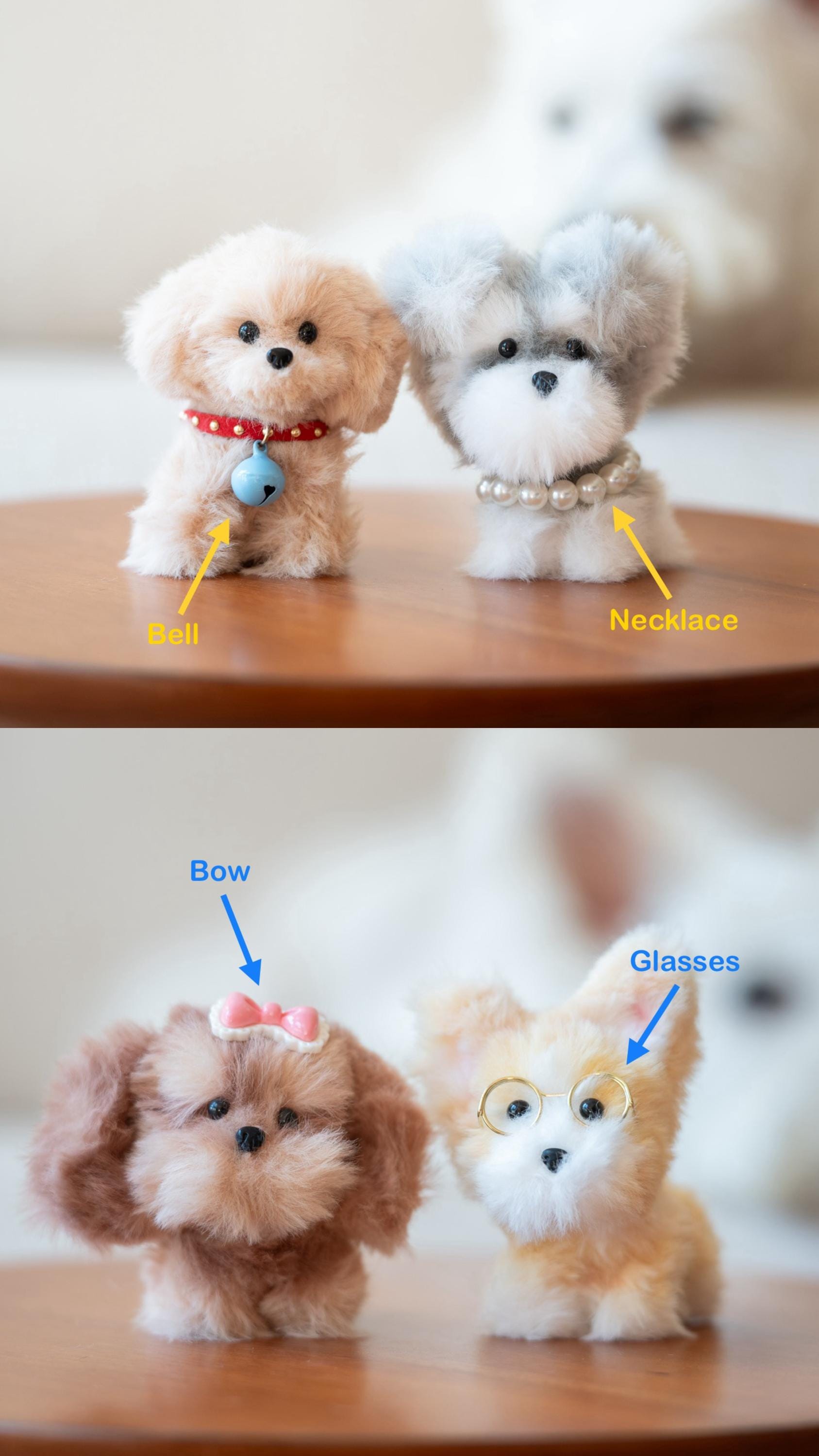 - The base price of the dog plushies includes just the bare plush without any accessories. You can customize your plush by adding any accessories you like, which may alter the final price.