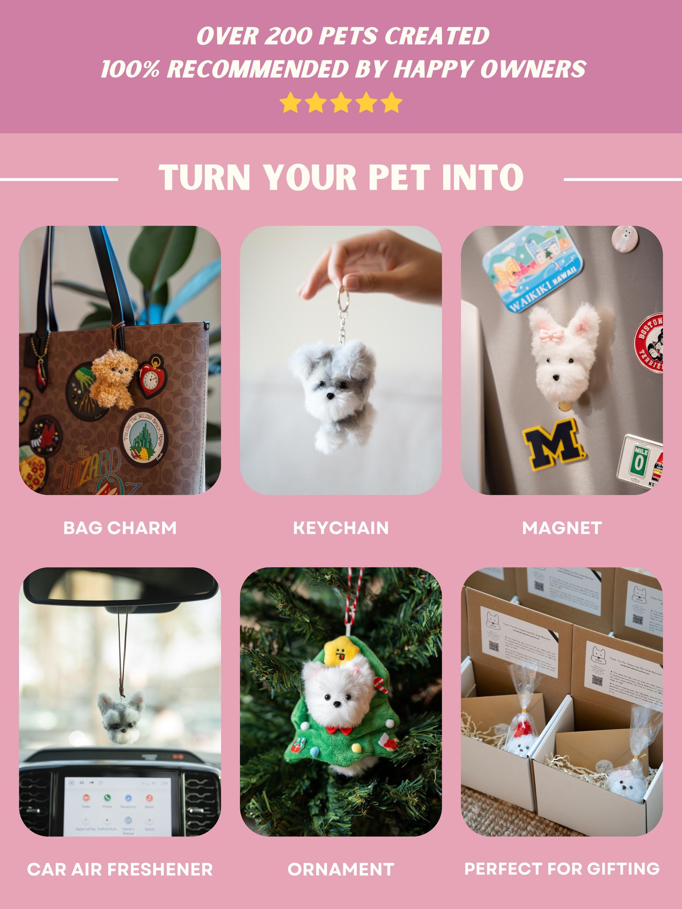At KiKiLove, we can transform your furry friends into adorable keychains, ornaments, bag charms, magnets, and air fresheners—perfect for Pet Memorial Gifts, Dog Memorial Gifts, Custom Pet Gifts, and more. Welcome!