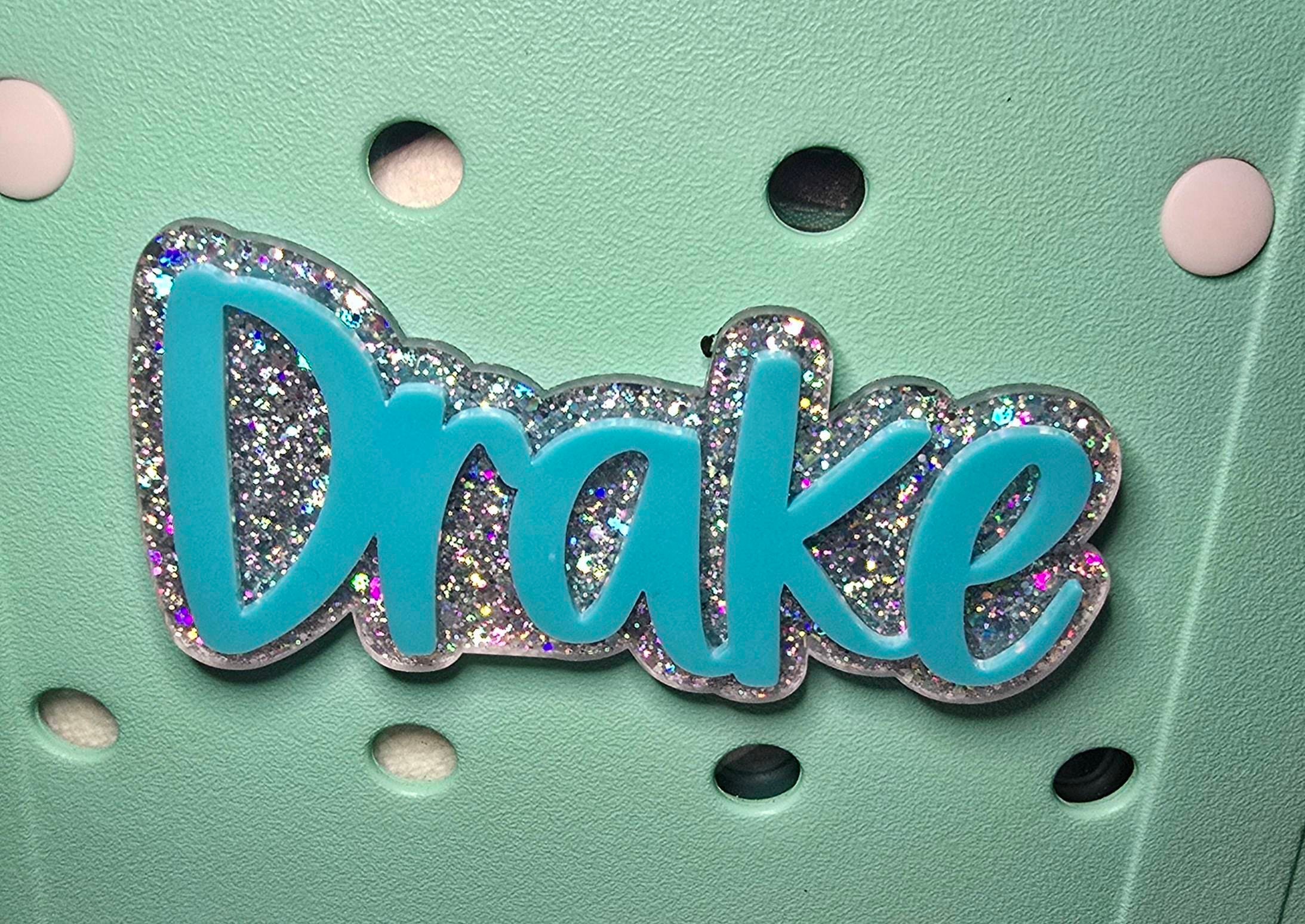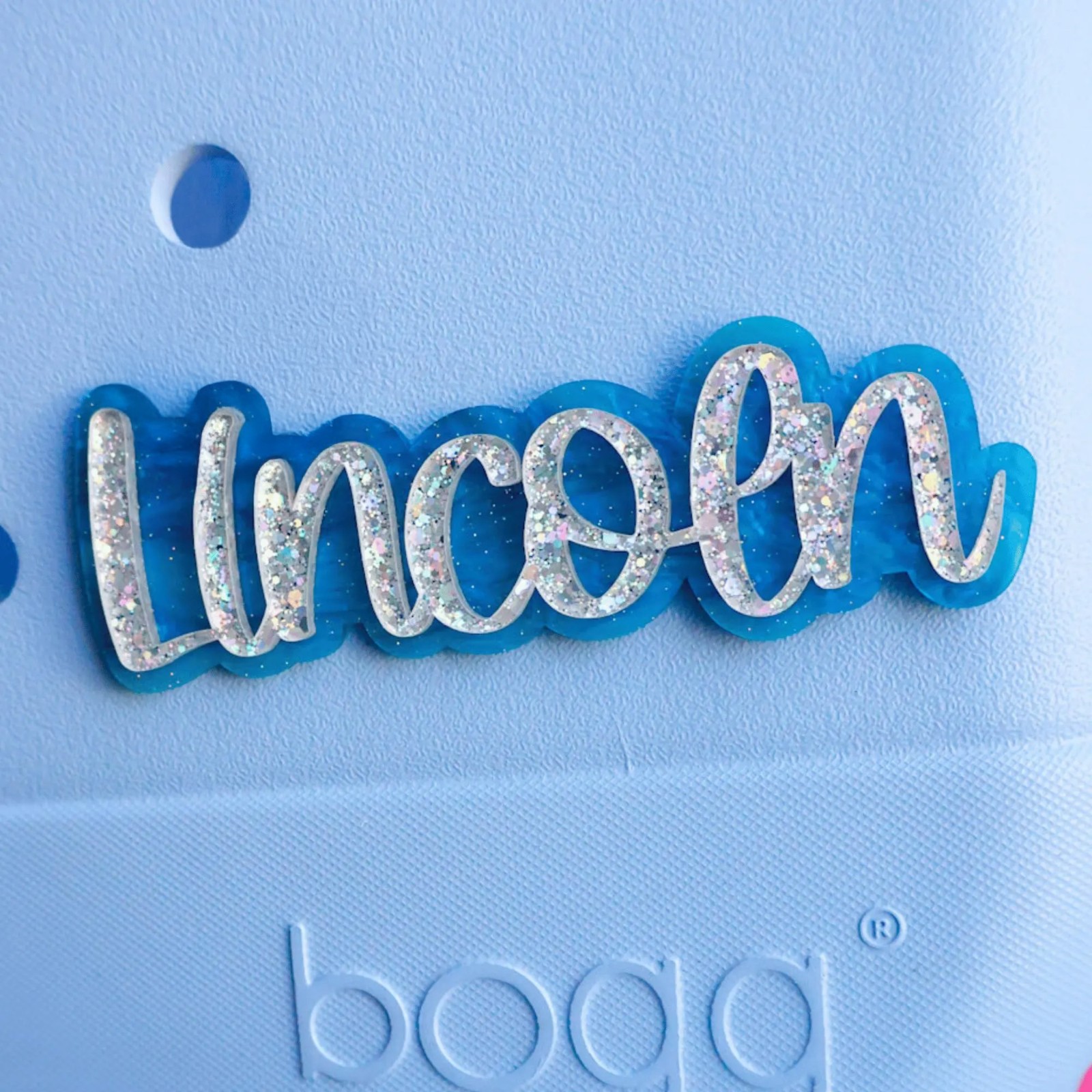 Customize your favorite Bogg bag with your name! Finished name measures approx. 5" wide, longer lettered names will still measure 5" wide, and include 1 hole connector stud that pushes in snugly.