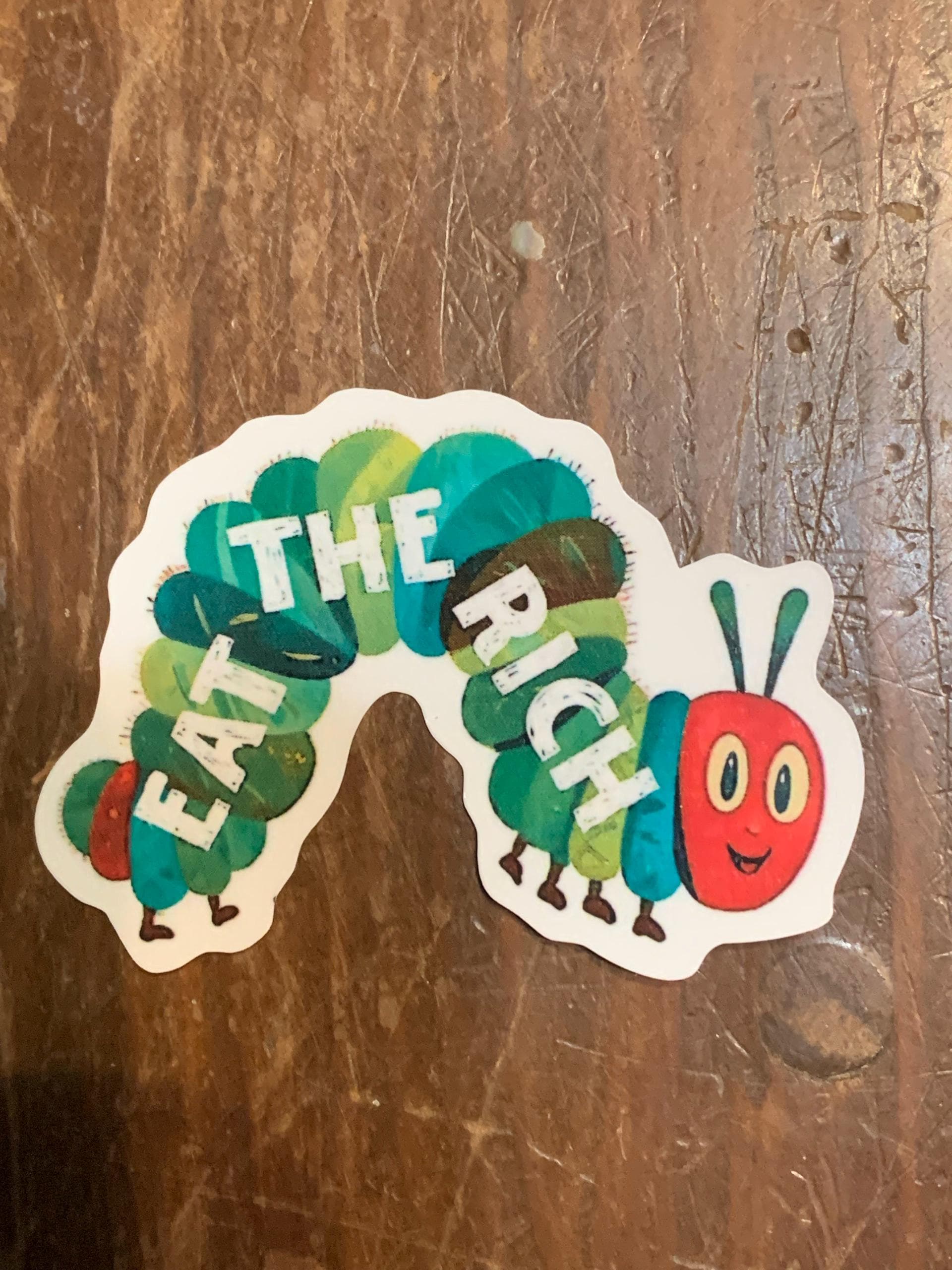 Eat the Rich Caterpillar Decal | Political Statement Sticker | Activist Sticker | Social Justice Sticker | Laptop Sticker | Political Protest Decal
