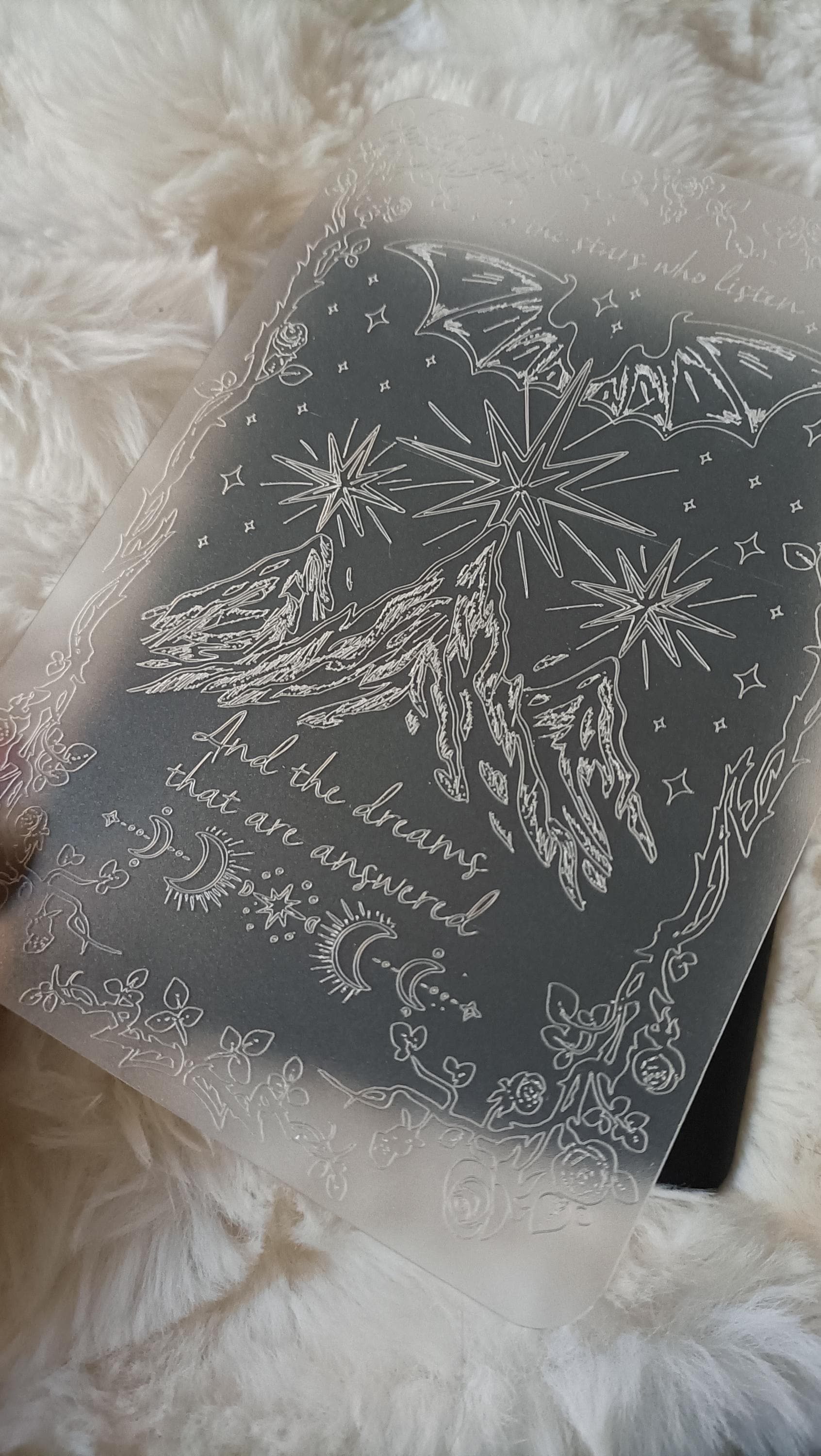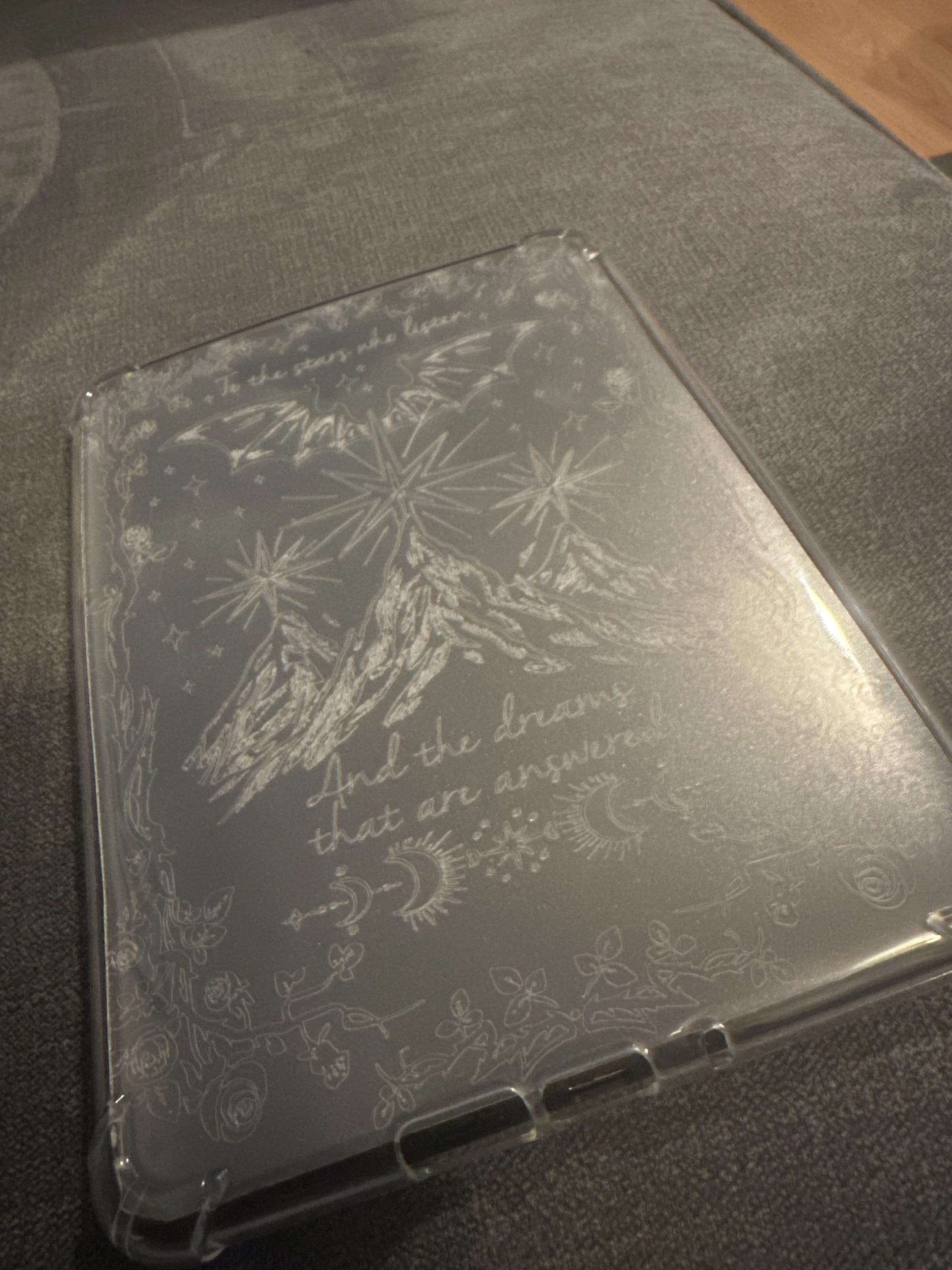 Made using a 450 micron frosted plastic type material designed to last. All you need is a clear case for your kindle then alternate the inserts as much as you wish or layer them together! (cases widely available on Amazon, message for links if needed) All waterproof, tare-proof. Frosted allows you to also layer with colours and patterns behind your insert to add more style.