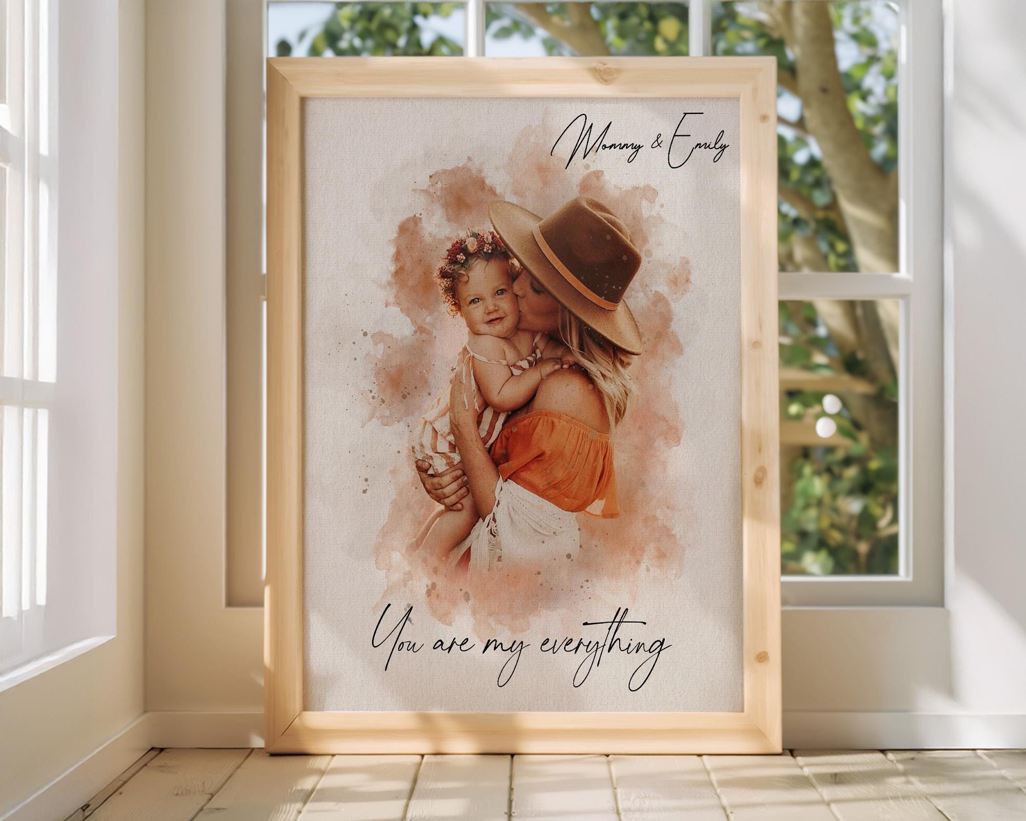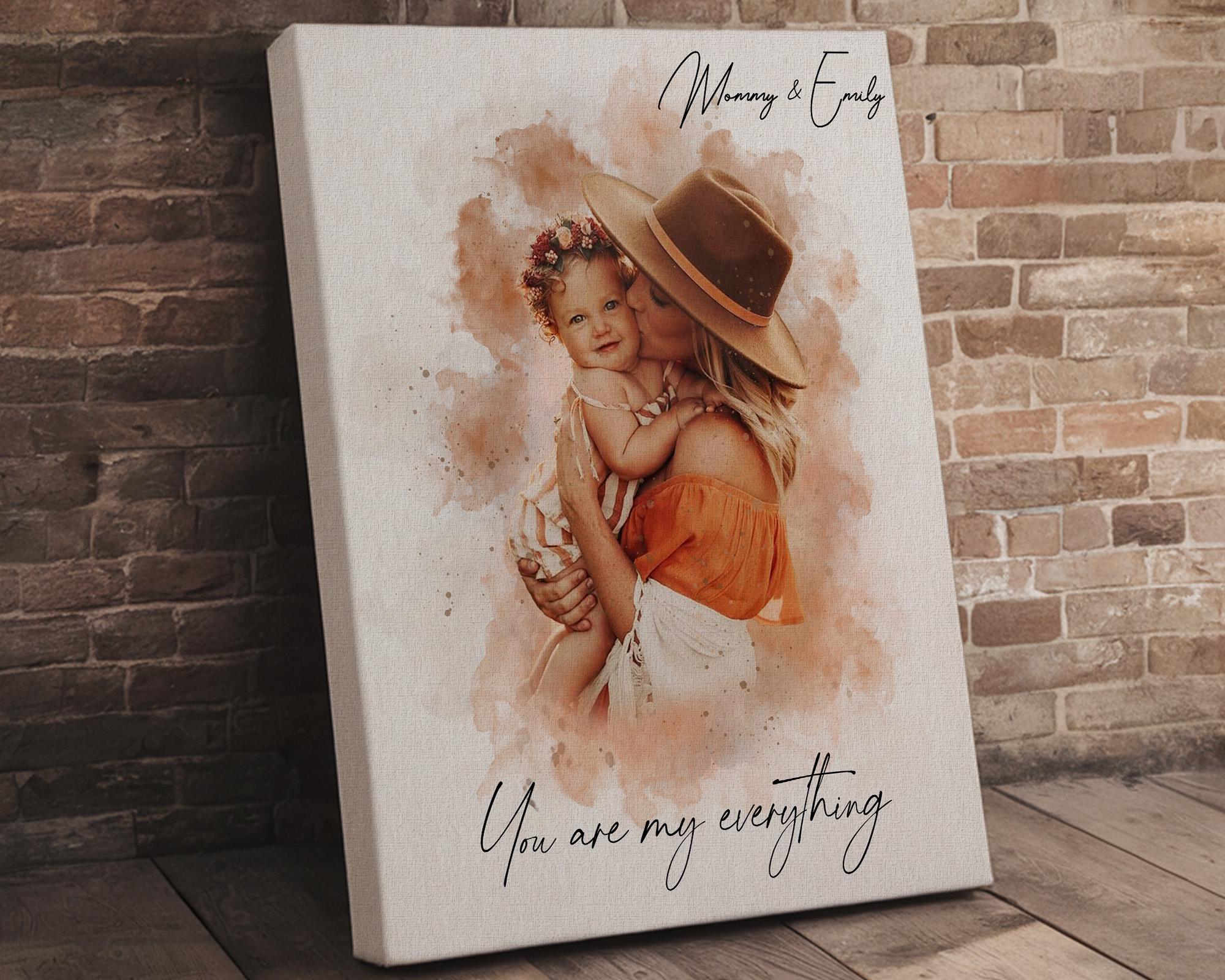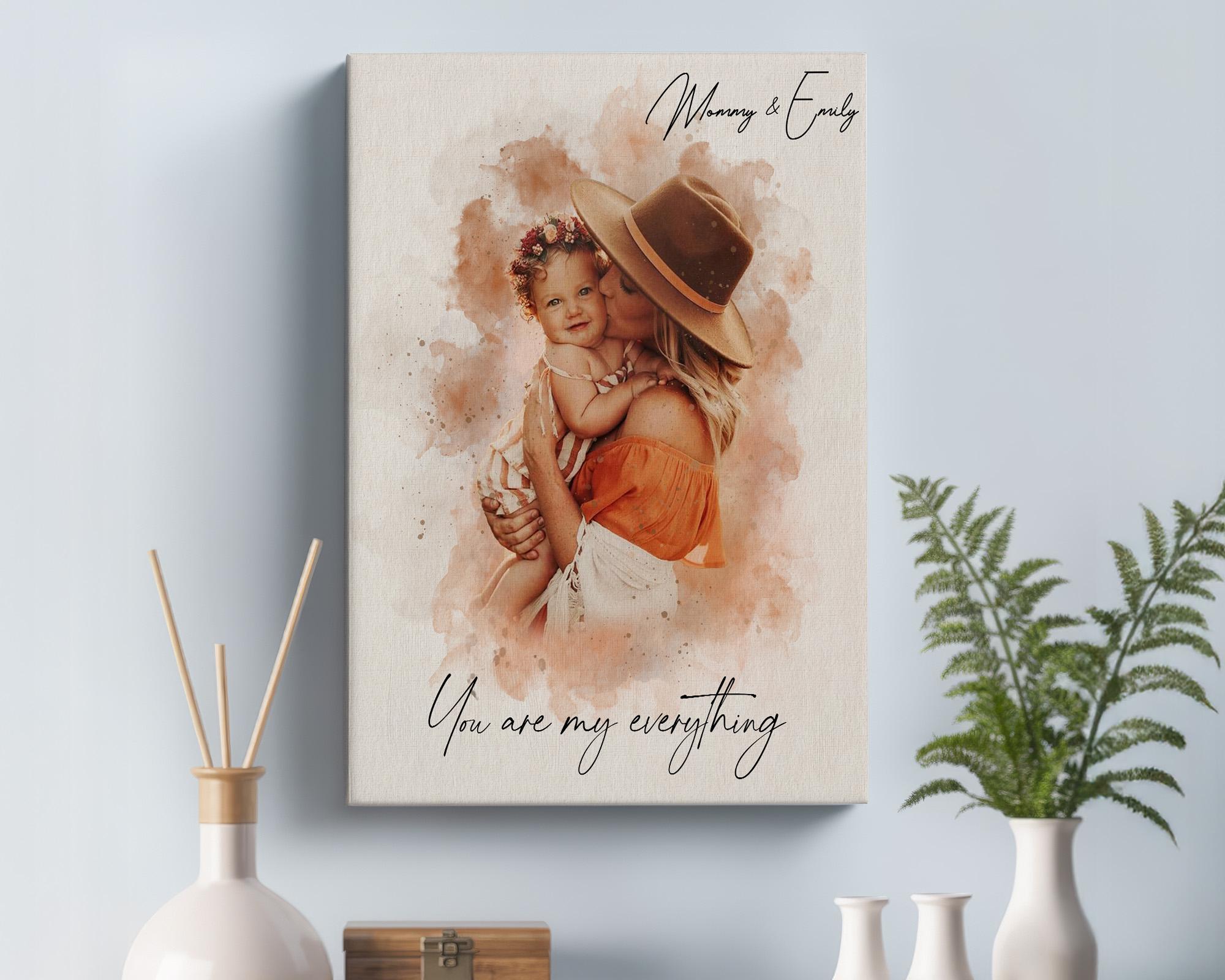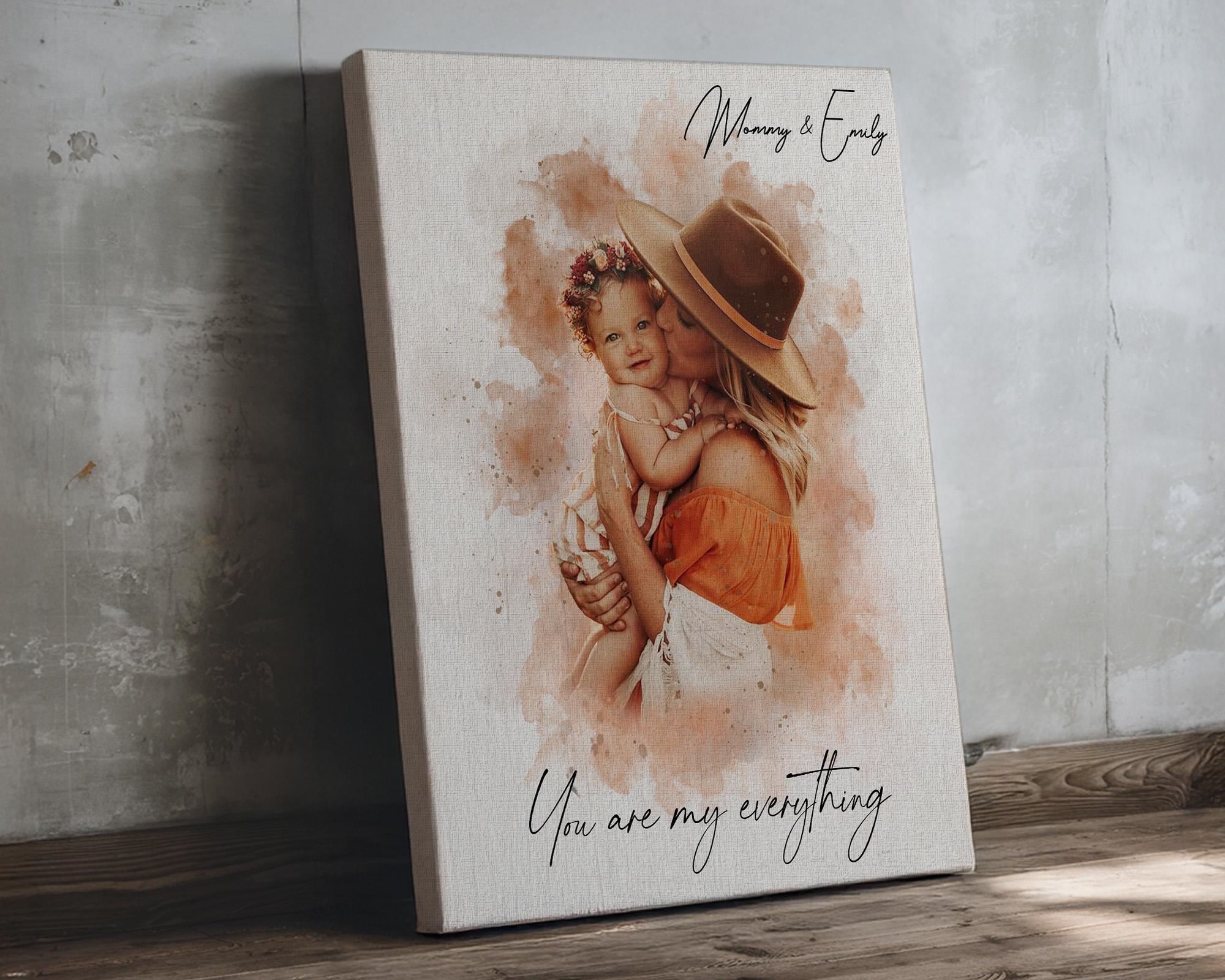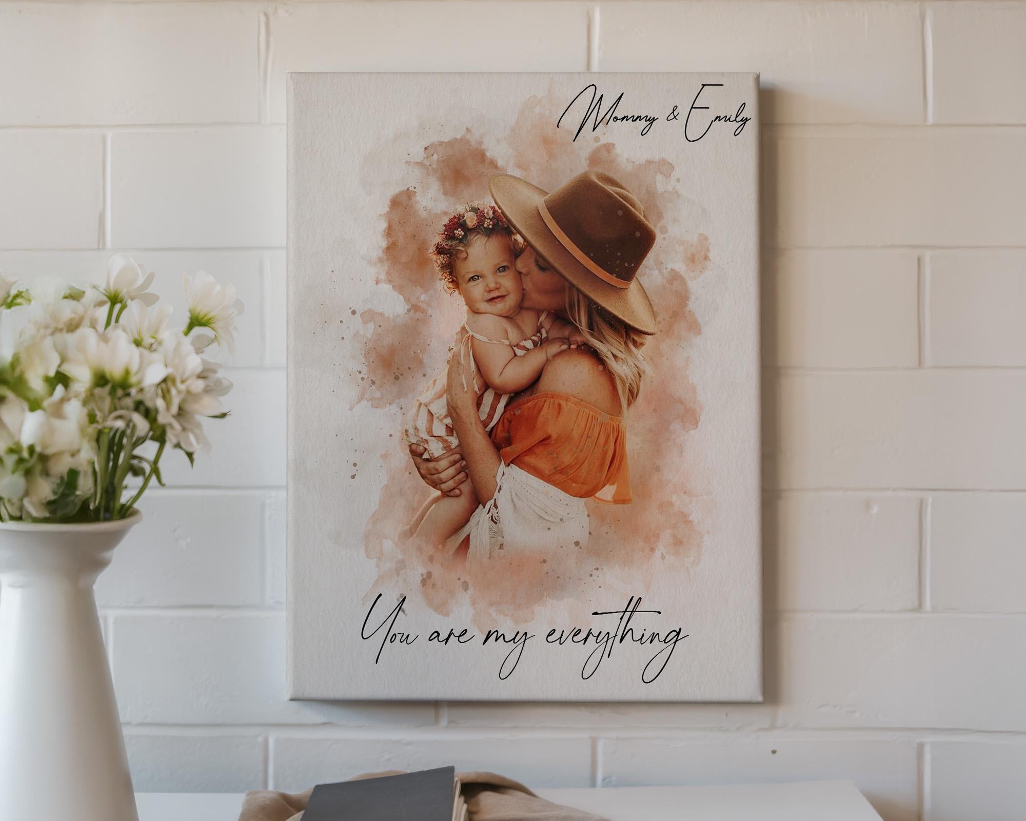 Celebrate a new mom's special milestone with our First Mother's Day Watercolor Portrait Canvas, the perfect personalized gift from baby. This unique keepsake is an ideal 1st Mother's Day gift, capturing the joy of motherhood and making it a cherished treasure for first-time moms.