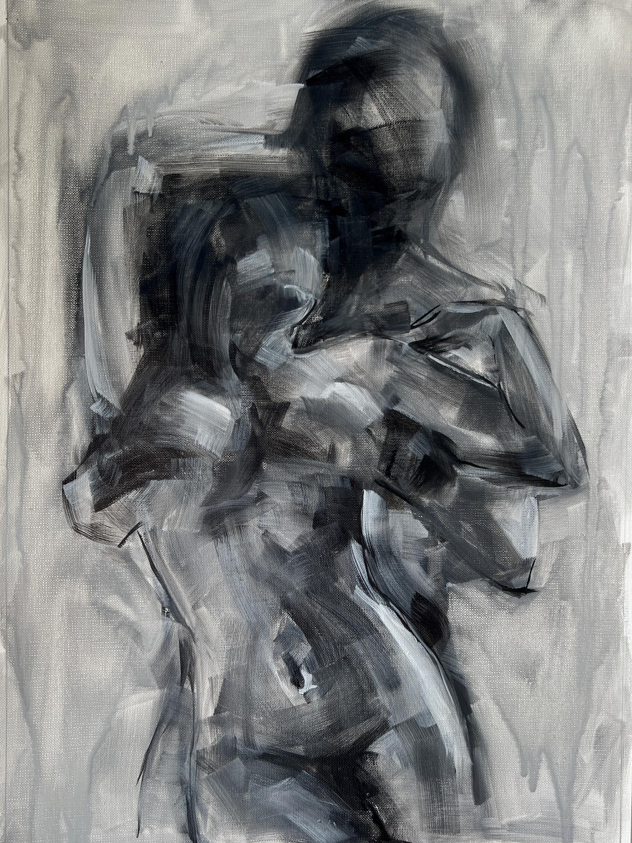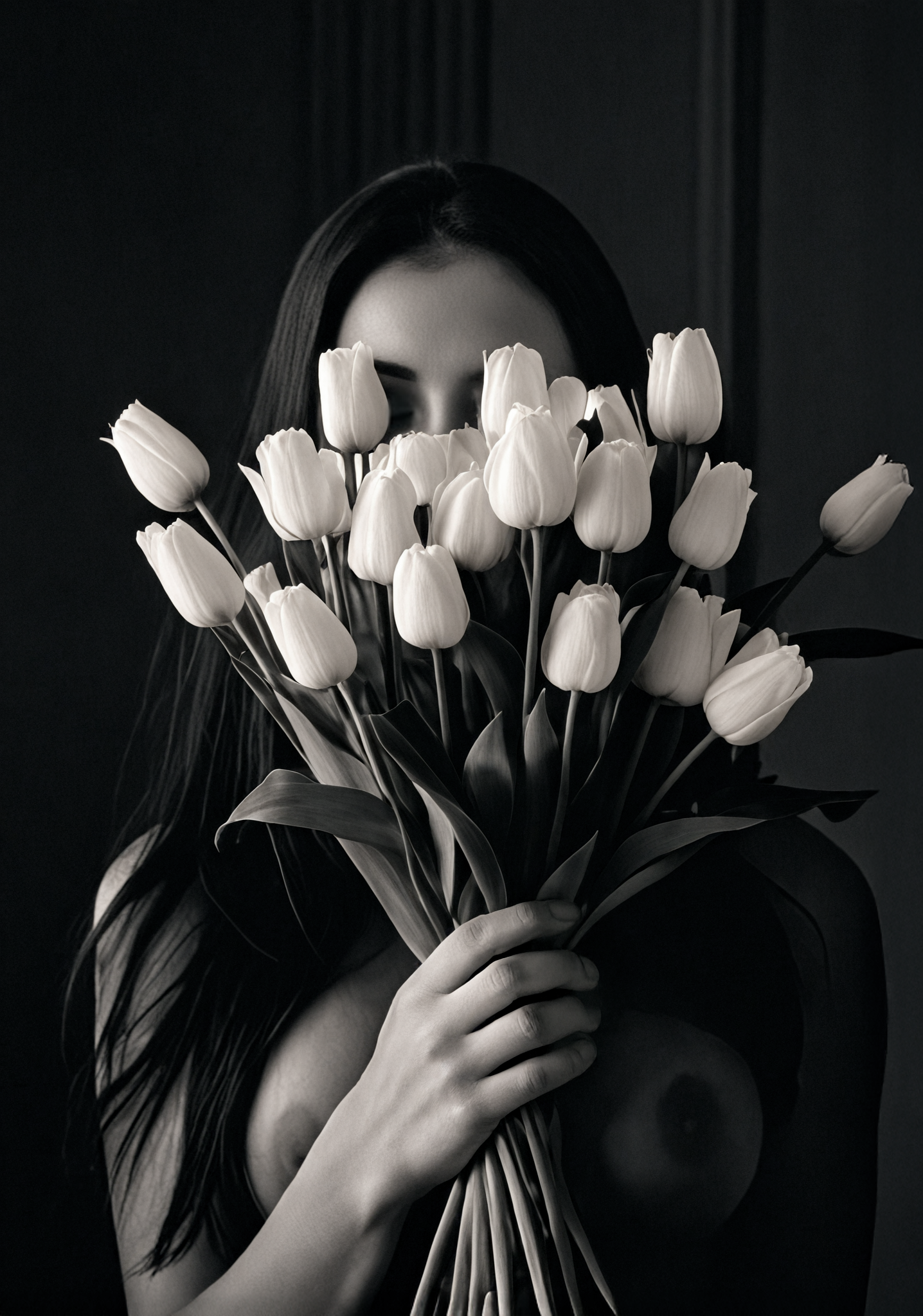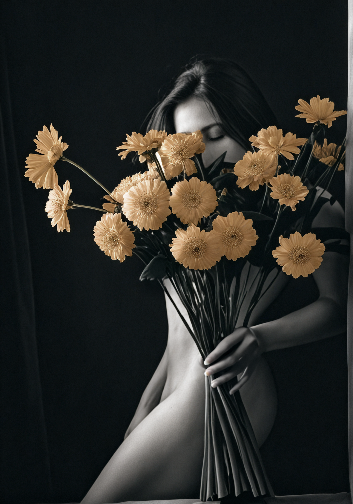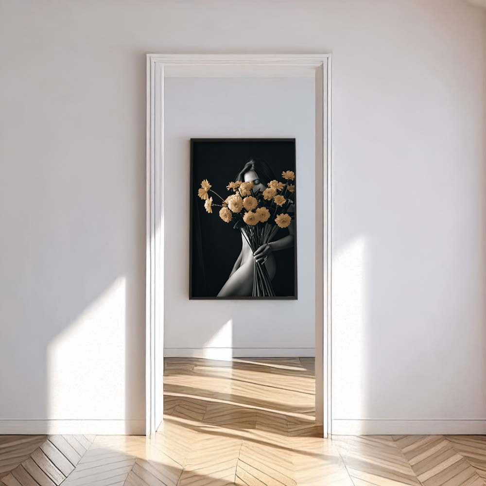 Black and white erotic art painting: This art painting presents the natural curves and elegant posture of the female body in black and white photography or sketch style, exuding a restrained but sultry sexy atmosphere. The delicate lines and light and shadow contrast create a simple and tense visual effect.