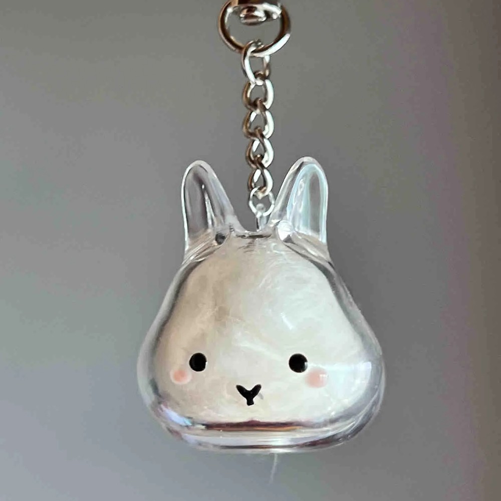 This rabbit fur capsule keychain is a cute commemorative ornament carefully made for you who love rabbits. The transparent shape and soft rabbit fur inside are like a small time capsule, preserving the gentle memories of being with your pet.