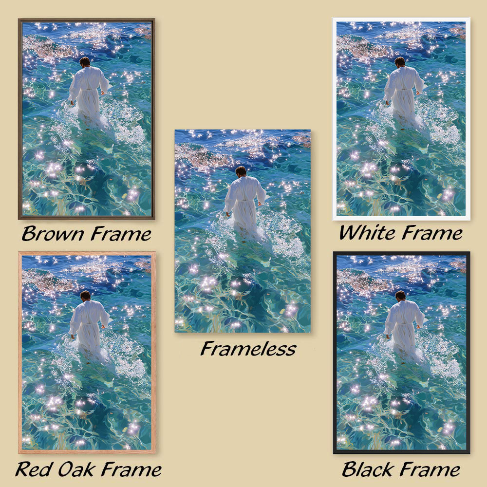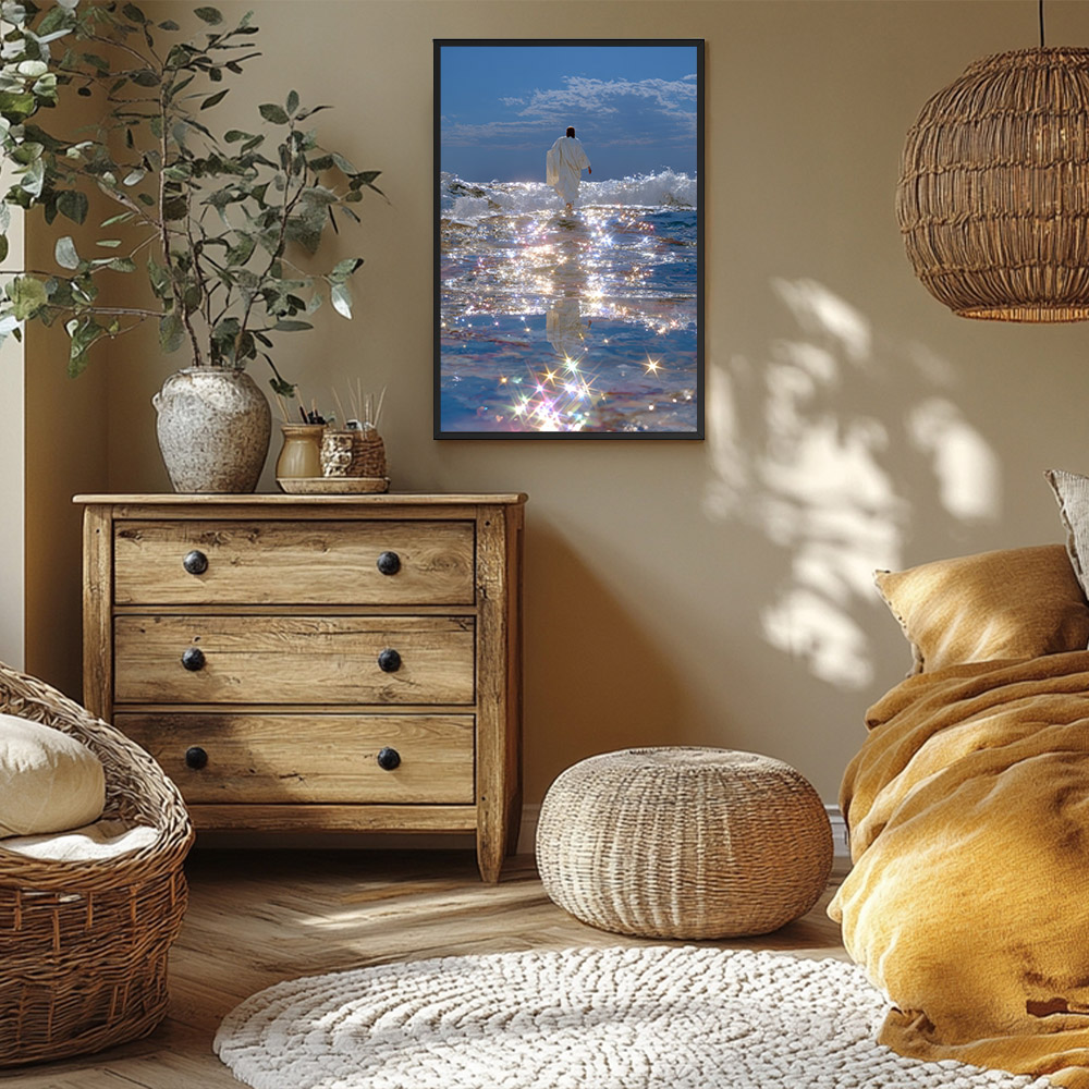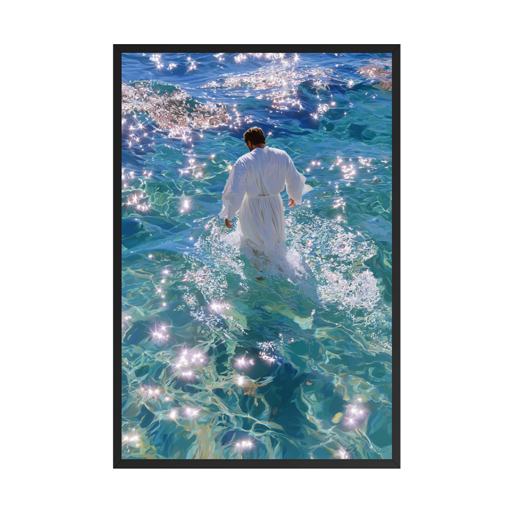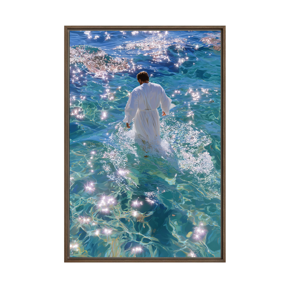 This wall painting depicts the classic scene of Jesus walking on the sea. The picture is solemn and sacred, implying the courage and comfort in faith. With the sea as the background, the color tone is tranquil and profound, full of sacred atmosphere.