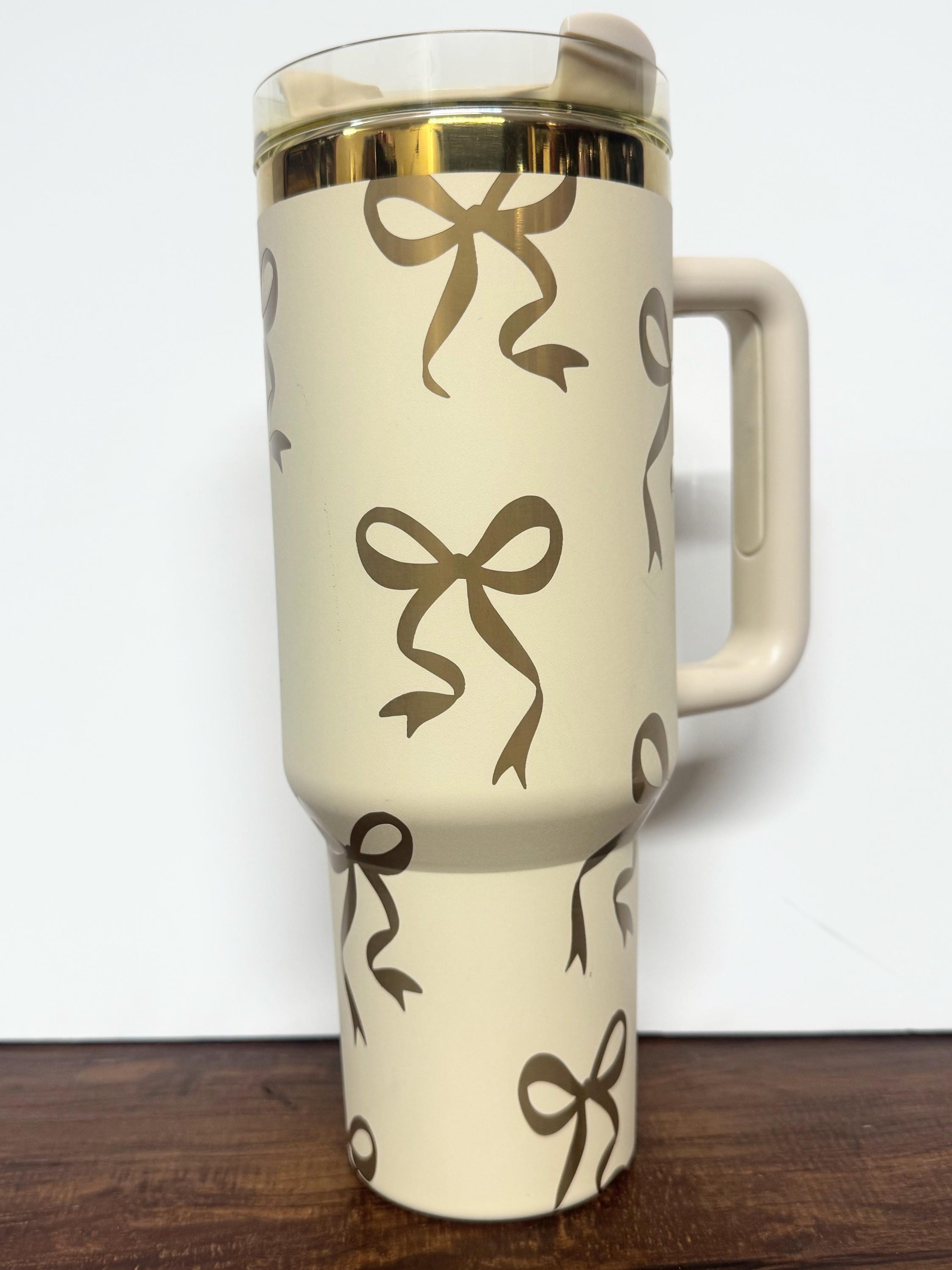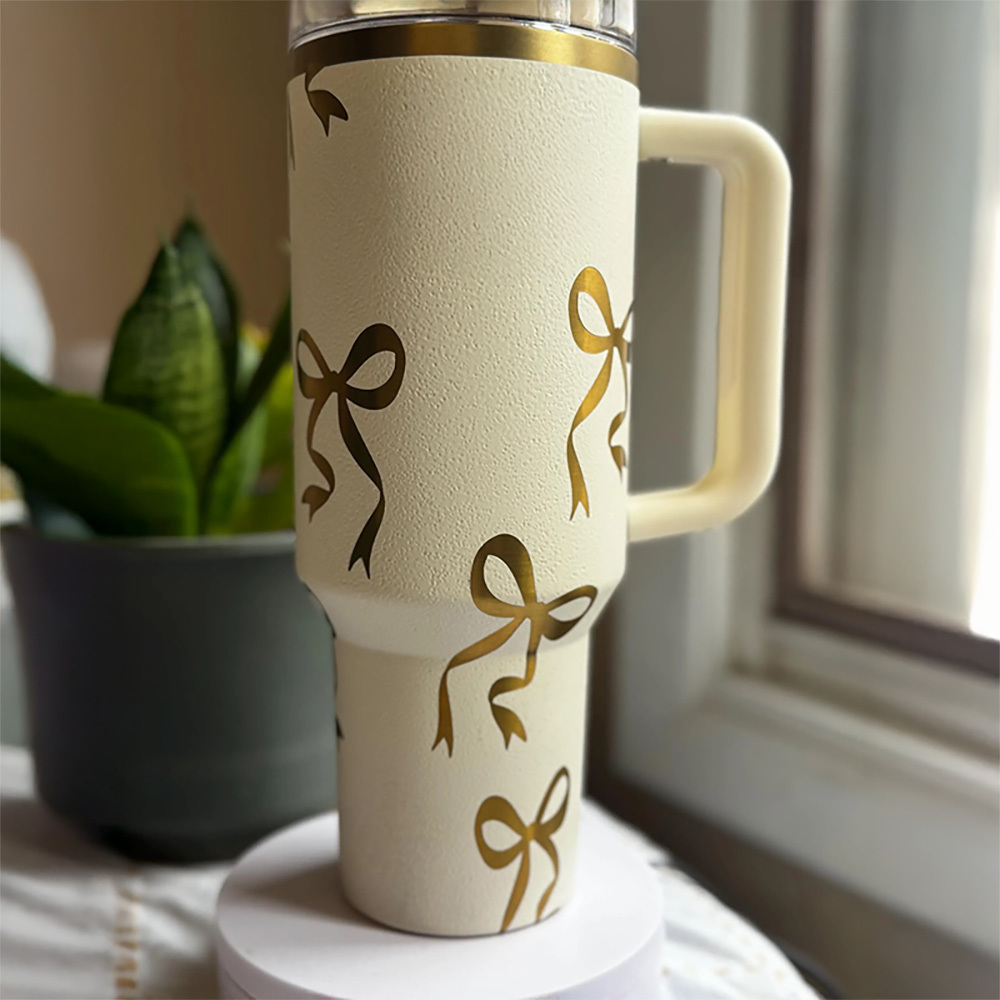 These are available in 40 oz. dupes (non-branded) and 40 oz. Stanley brand cups. The Stanley Cream/Gold and Black/Black are the Moon version and have a bumpy texture. Please note the color may appear different to you based on your computer or phone screen. You can go to the official Stanley website and check out the colors there if you are curious. I can also do a 30 oz. Stanley Quencher if you message me and request the color you want.