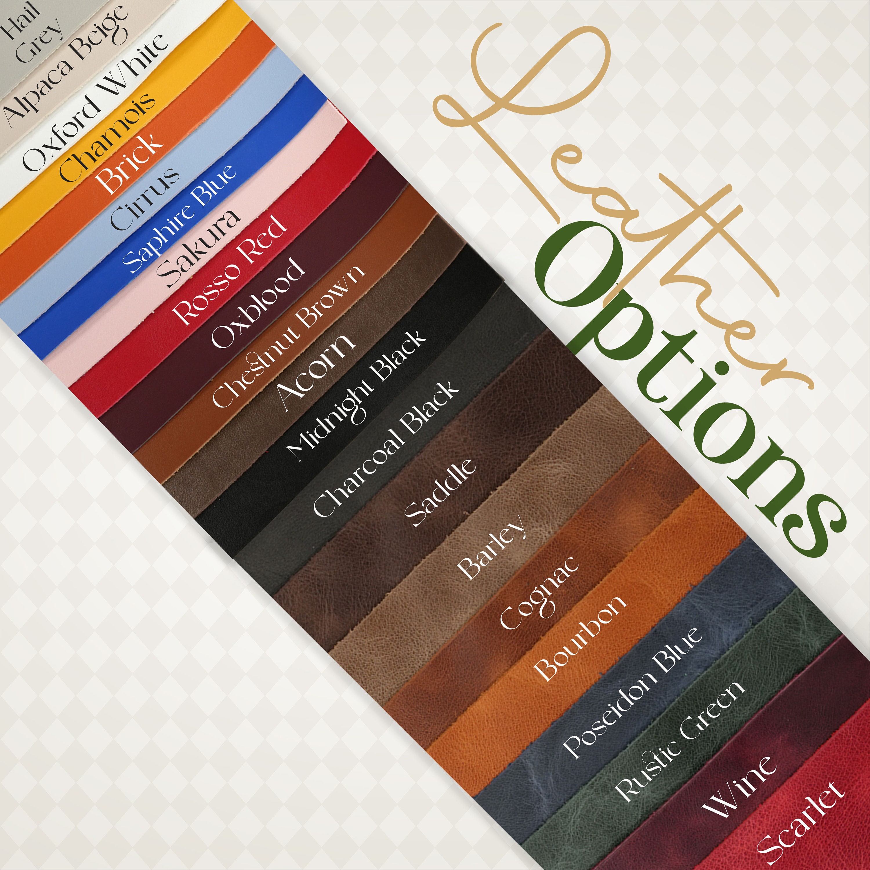 Our products are handcrafted from Genuine leather (for 9 crazy horse leather options). Each product has its own unique pattern. There may be slight differences in colors from screen to screen