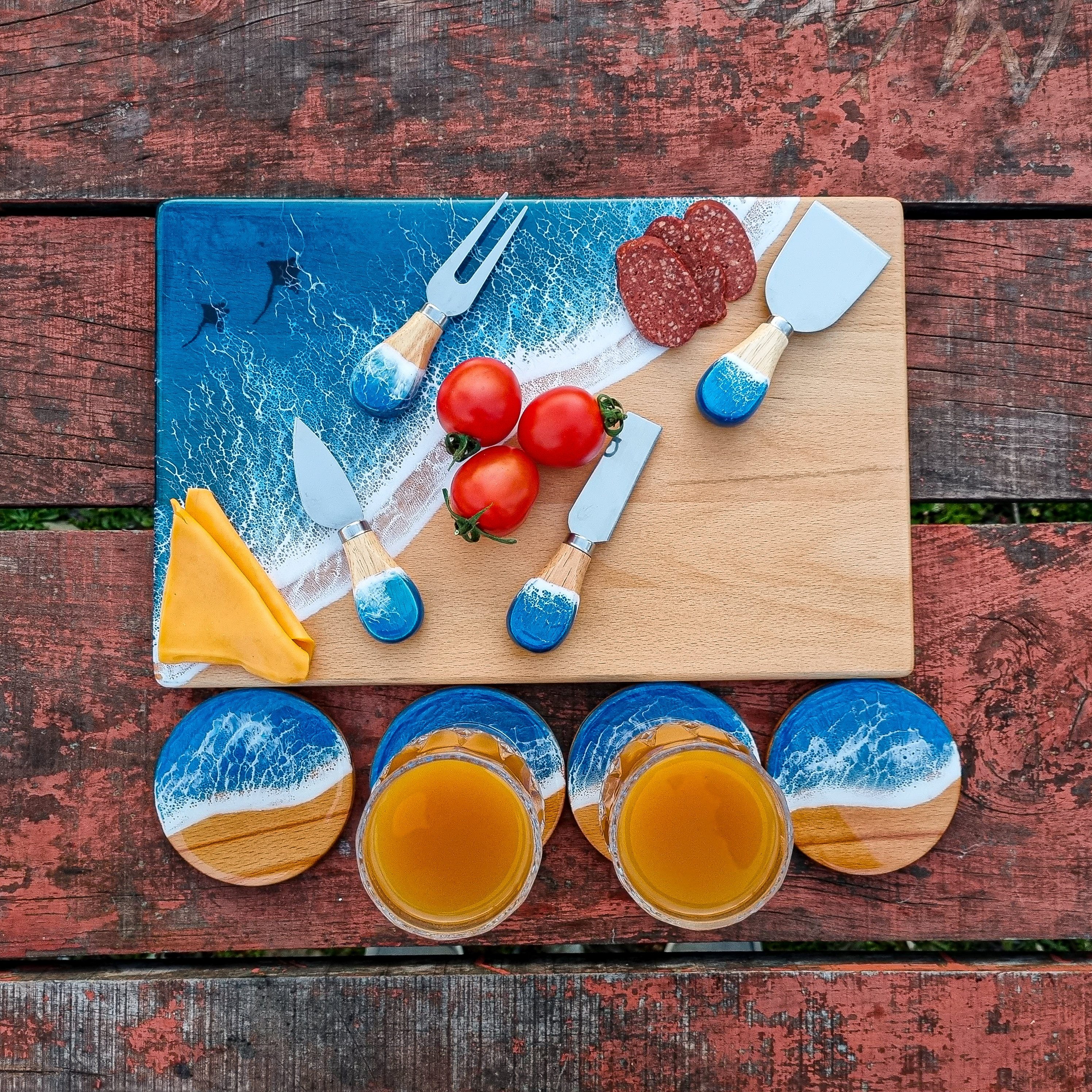 Discover the perfect blend of nature and artistry with our handcrafted wood and epoxy charcuterie board, a standout piece for any kitchen. Combining the warmth of natural wood with the sleek elegance of epoxy, this unique creation is an ideal gift for all your special moments.
