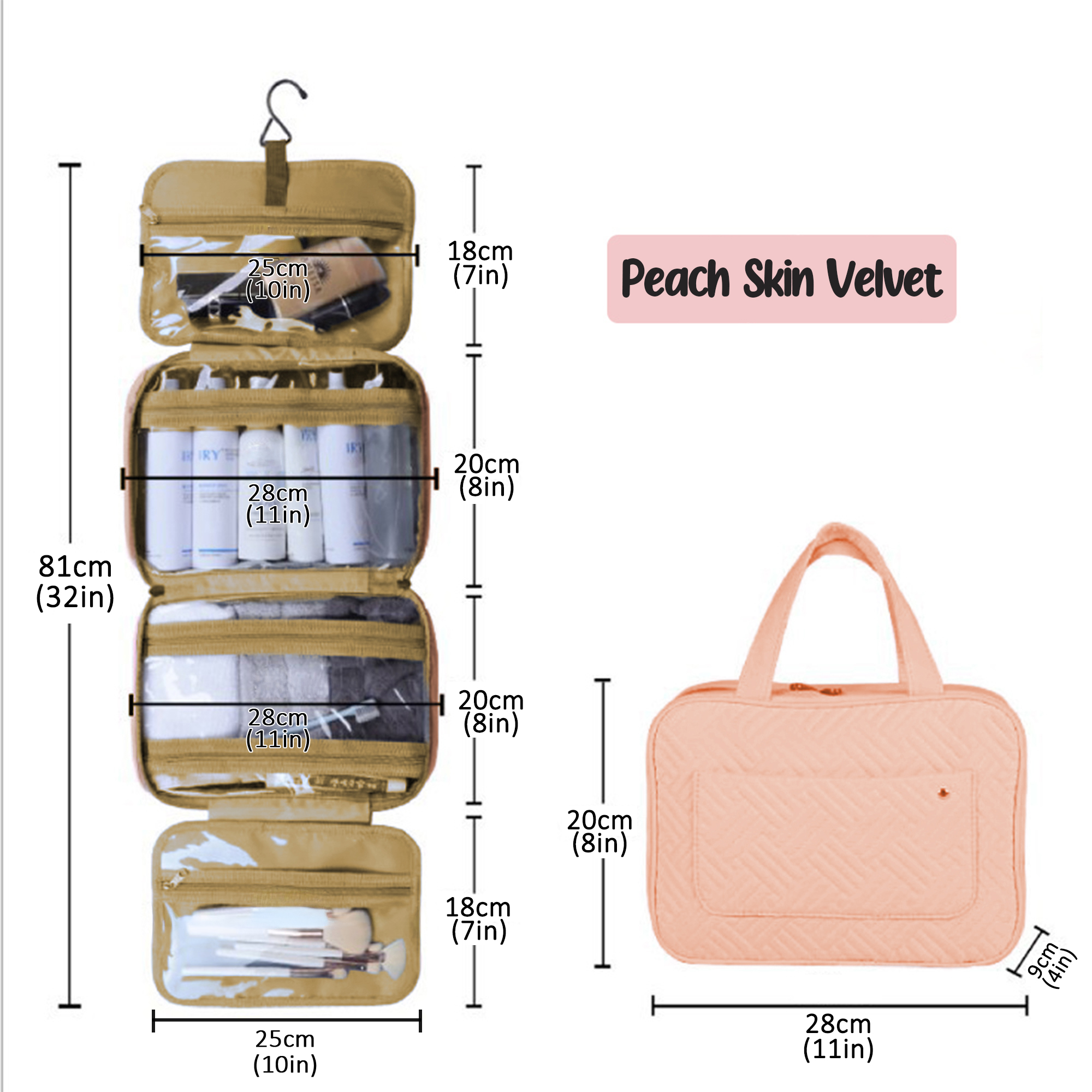 Makeup Bag - Water-resistant Polyester peach skin with supple touch; Well-padded design to keep full bag's shape and provide great protection. Sturdy stitching and heavy duty material and it can stand up many items. Convenient and easy-to-carry, great for overnight staying, a long journey, gym shower and outdoor activities.