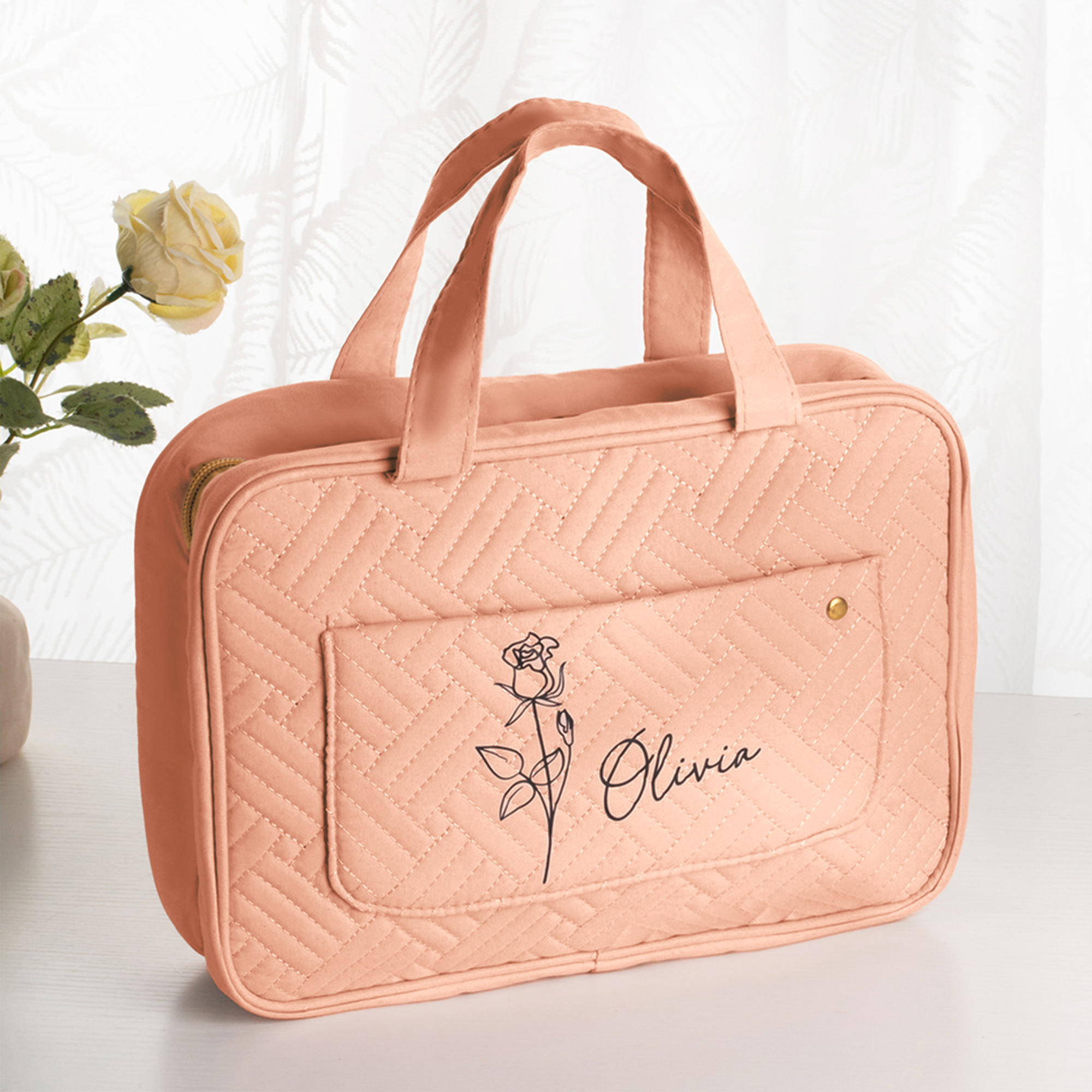 Personalized Names And Birth Flower Cosmetic Travel Bag |