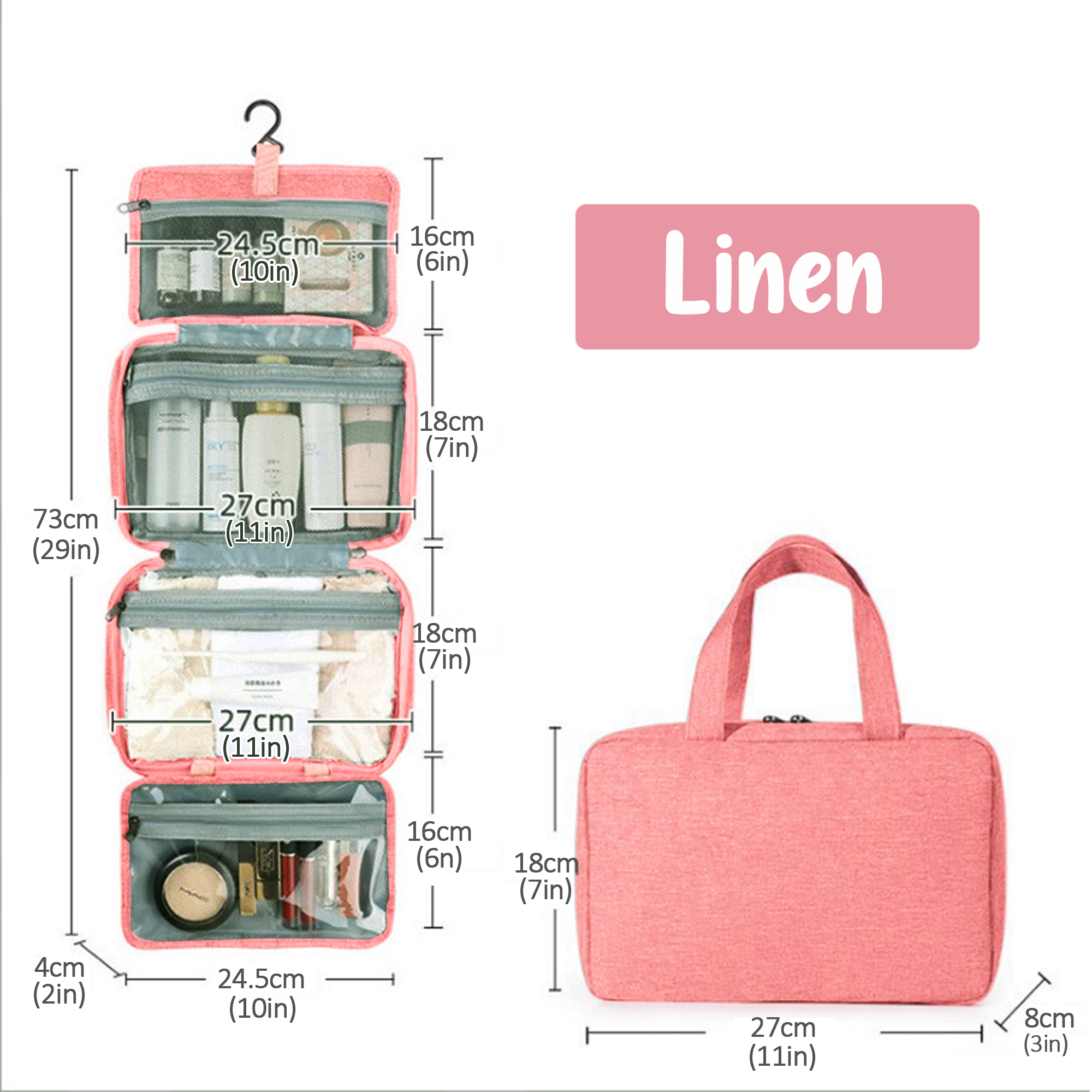 Foldable Make Up Organizer - Stow-away 360 degree swivel non-slip metal hook for versatile hanging options; Two-way zipper closure for quick access; Carry handle doubles as its hanging strap.