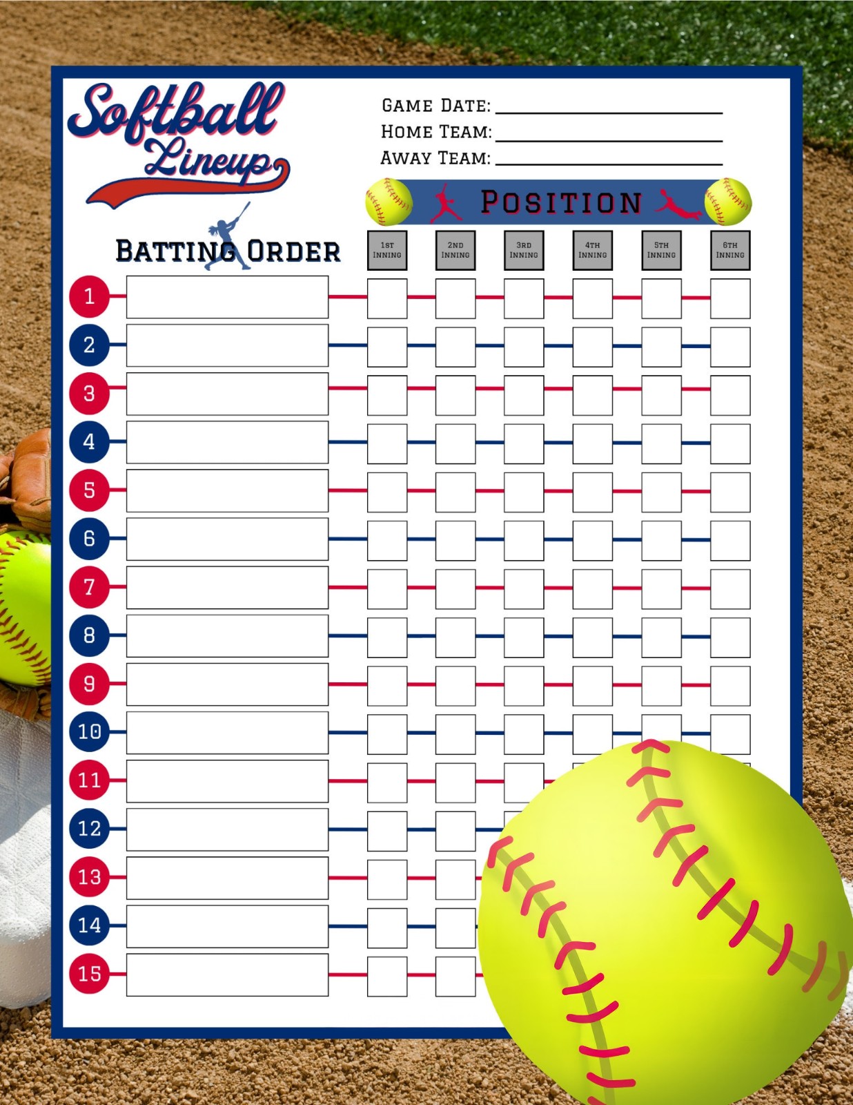 Printable Softball Lineup Card Softball Position Board Softball Coach Roster 15 Player Batting Order Team Position List Softball Dugout