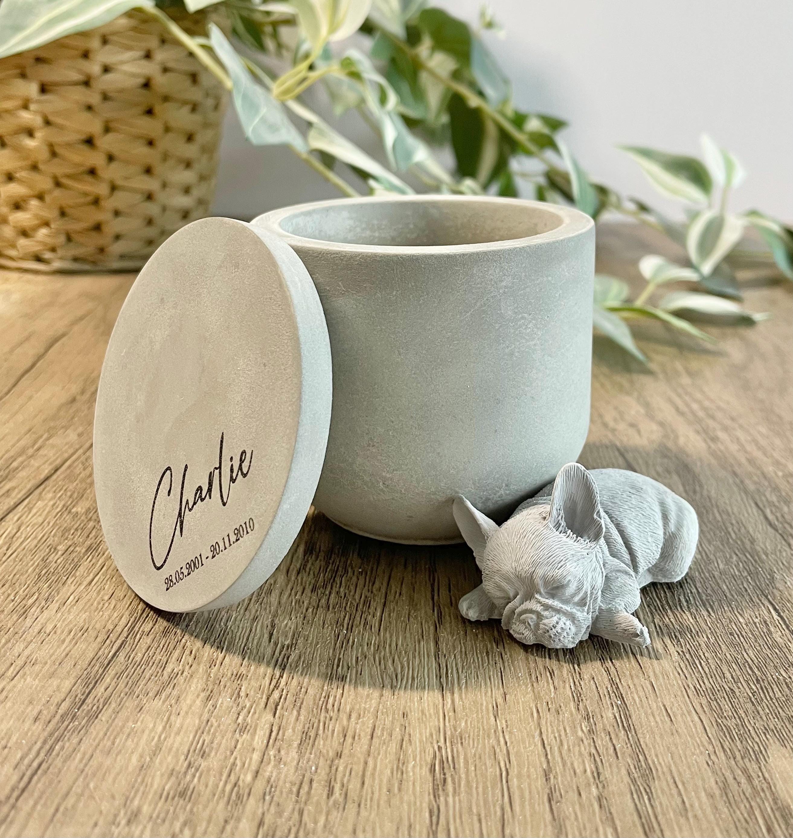 if you're looking for a truly unique way to honor the memory of your furry friend, look no further than my handmade concrete urns