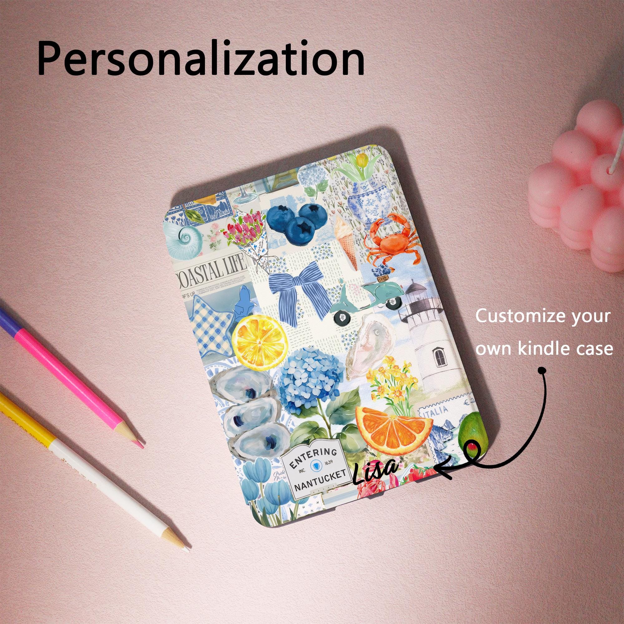 Summer Collage Aesthetic Kindle Case with Strap,2024 Kindle Colorsoft Case,Cover Paperwhite 12th 7-inch,Kindle 11th,Free Personalization