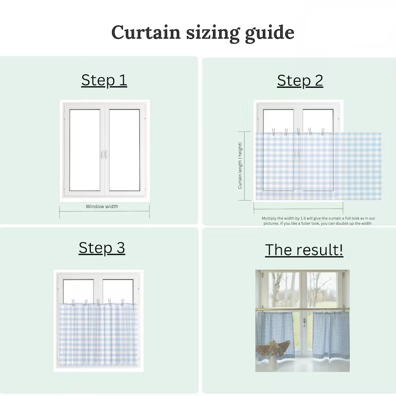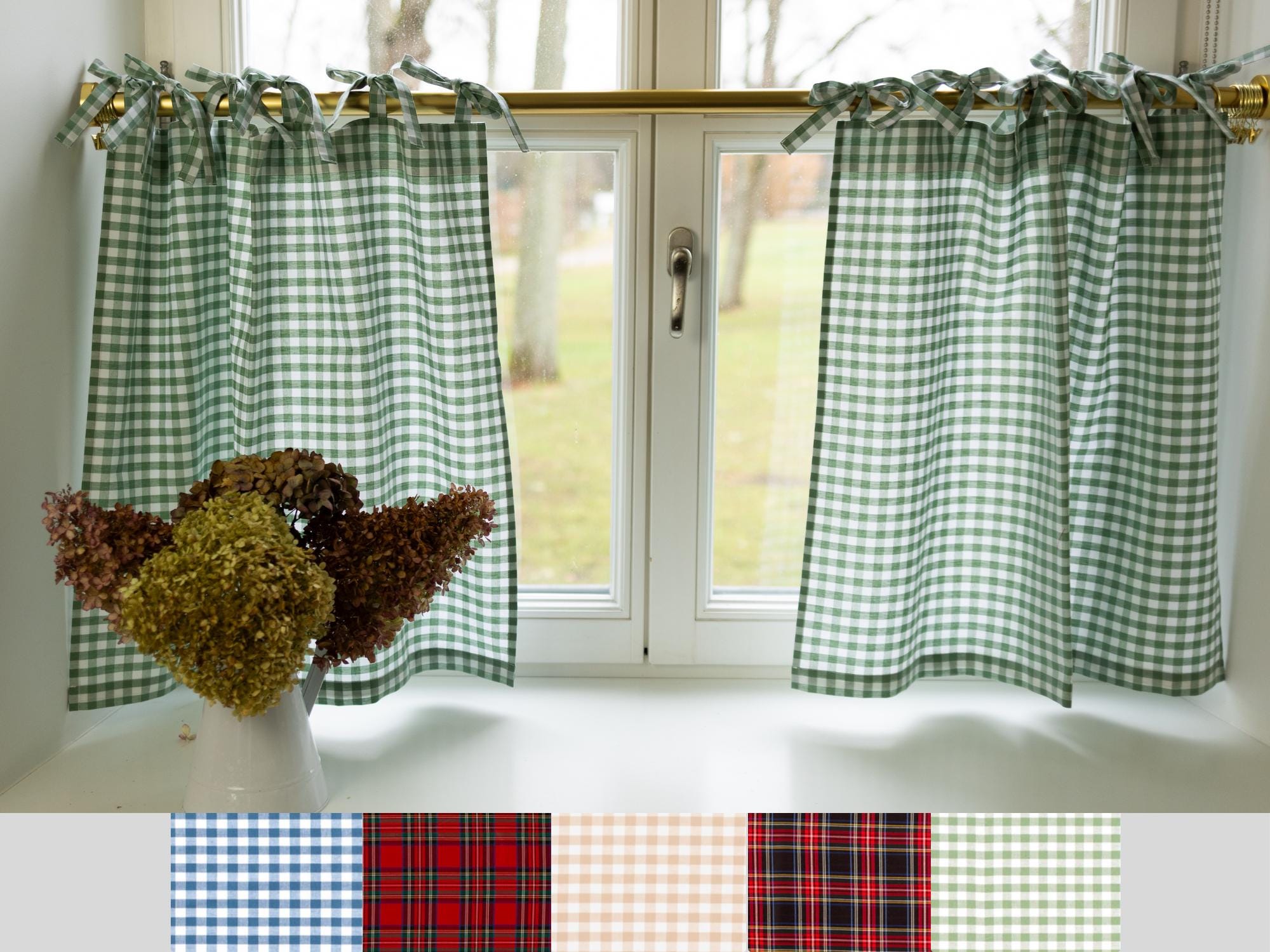 Perfect for small windows, these cafe curtains add privacy or cover areas like sinks and shelves while letting in soft light. Made from tartan or gingham fabrics, they bring a timeless, cozy feel to your space. The tie top design makes them easy to hang and adjust.